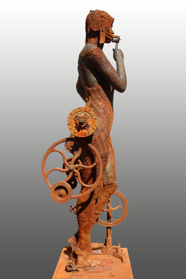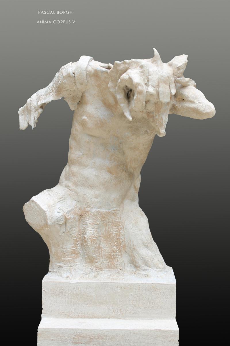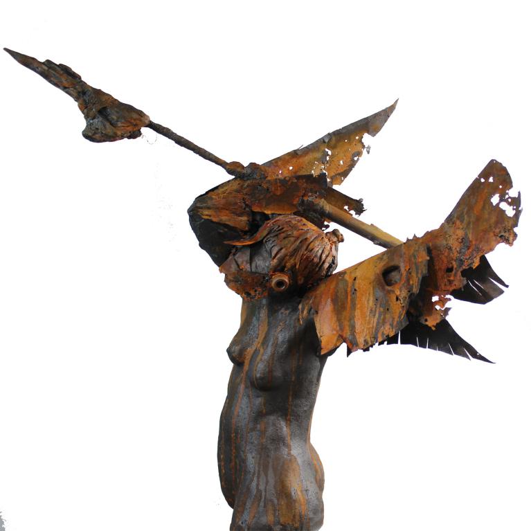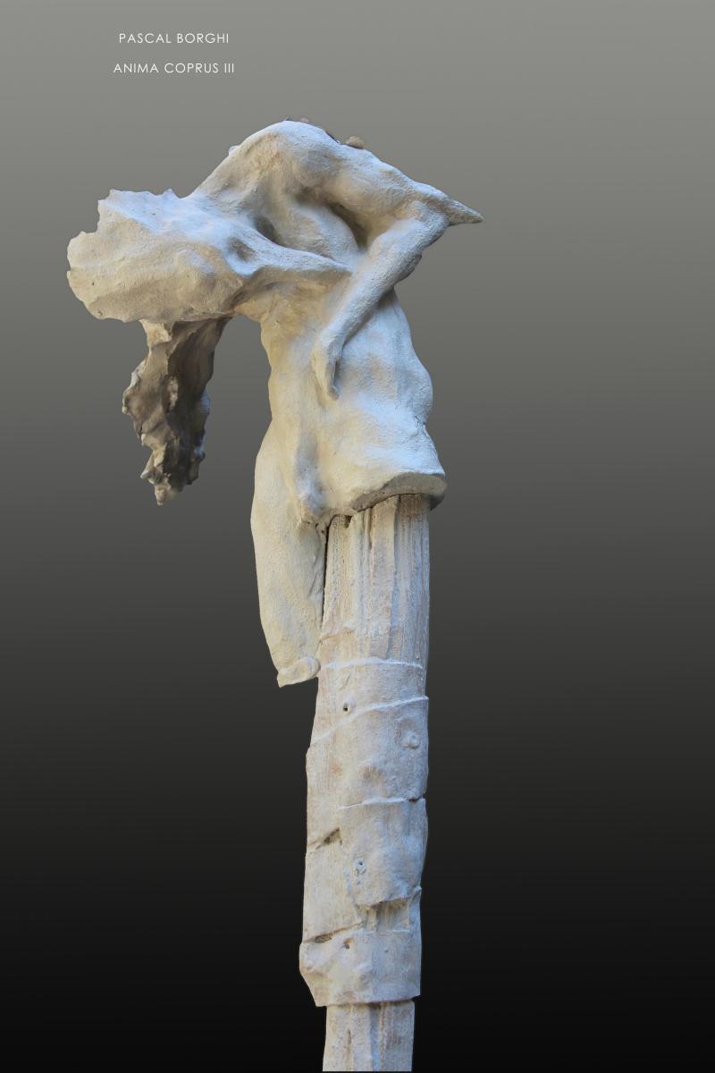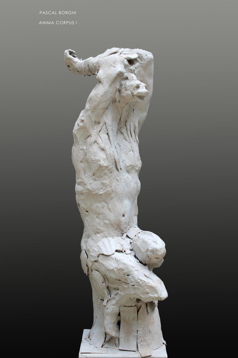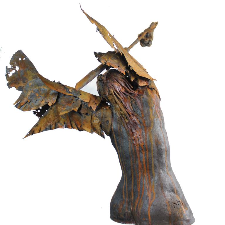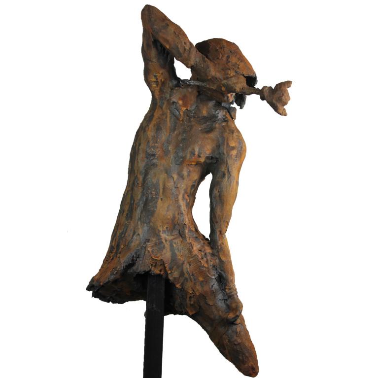 Anima liberari : grès et métal oxydation à froid dimension socle compris H170x55x30 cm
