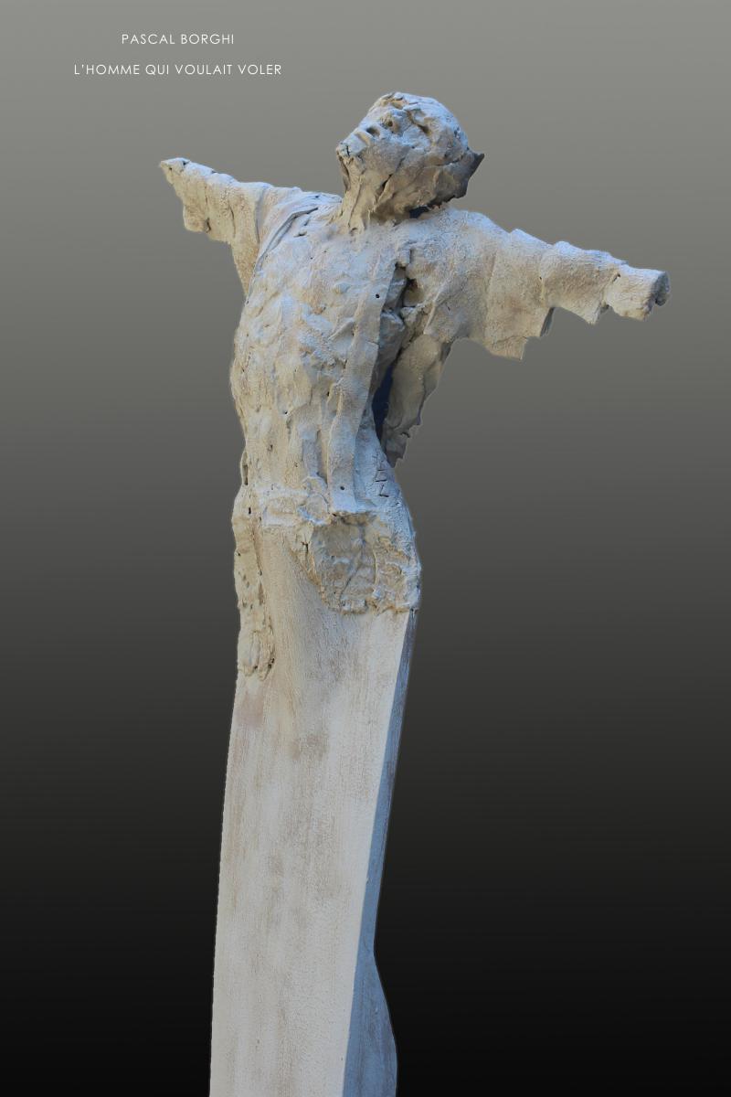 L'HOMME QUI VOULAIT VOLER grès et bois