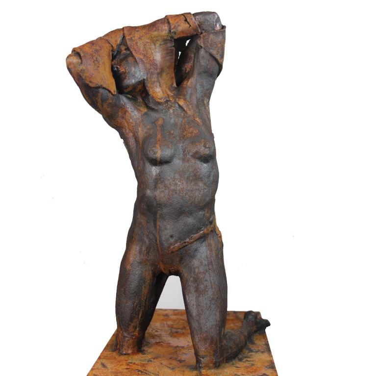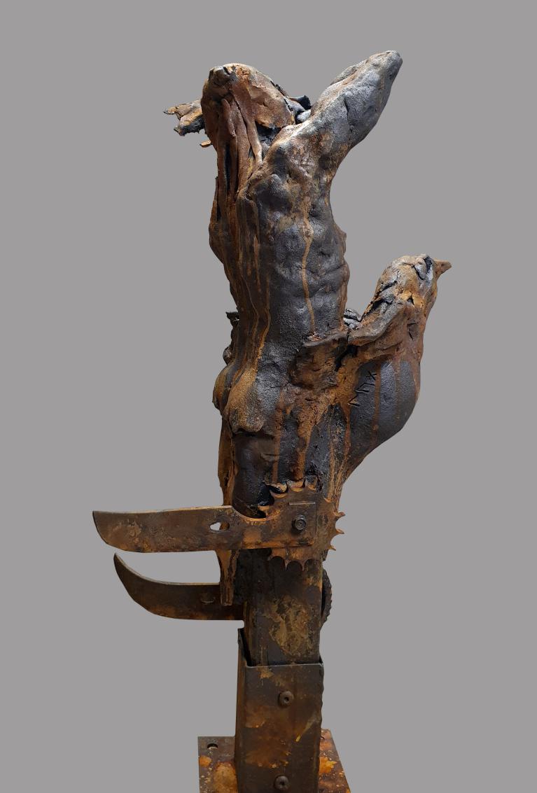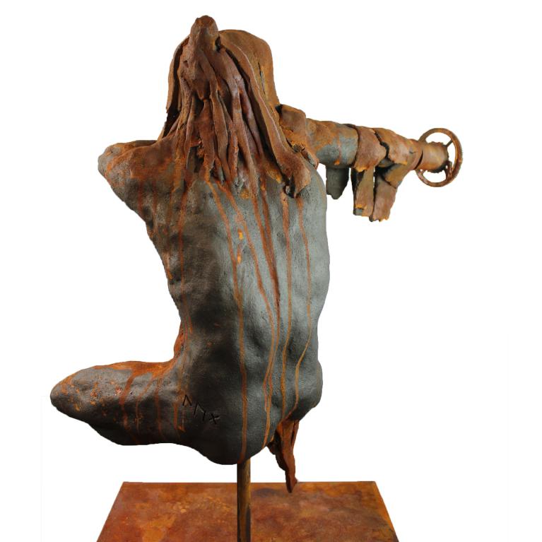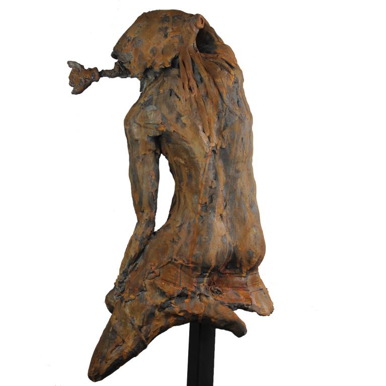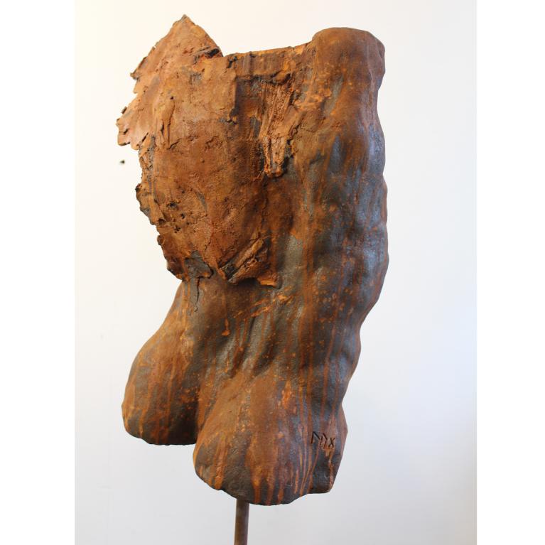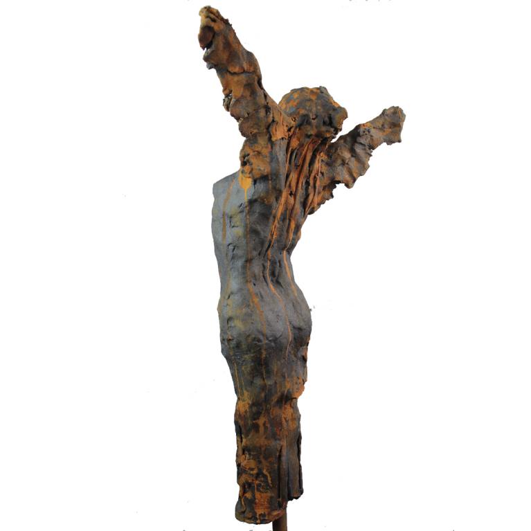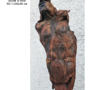 Anima liberari : grès et métal oxydation à froid dimension socle compris H170x55x30 cm