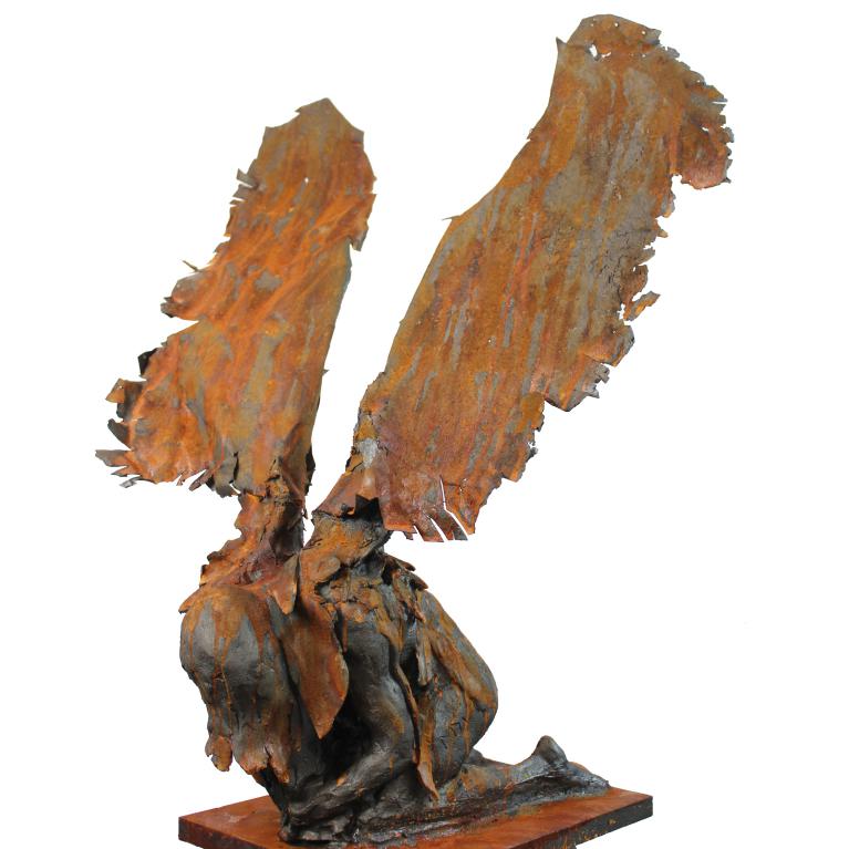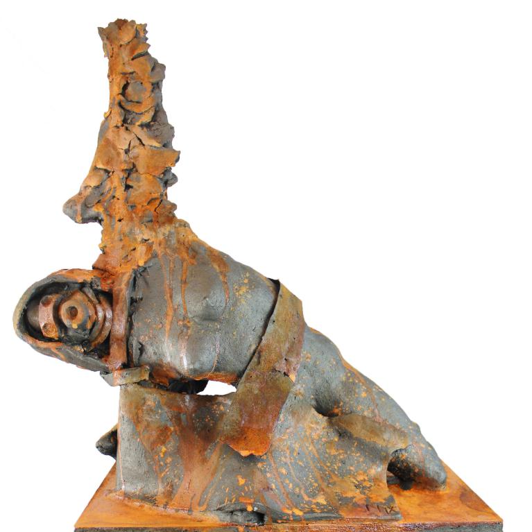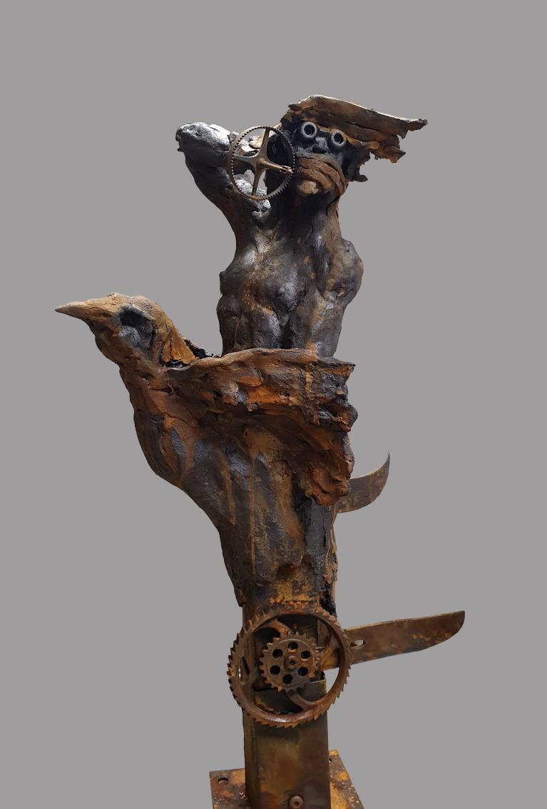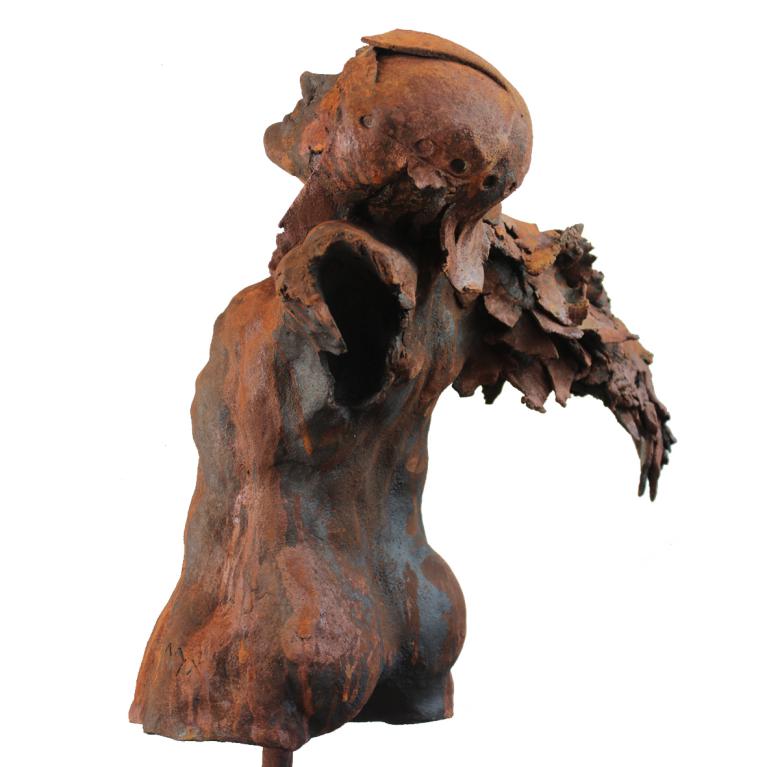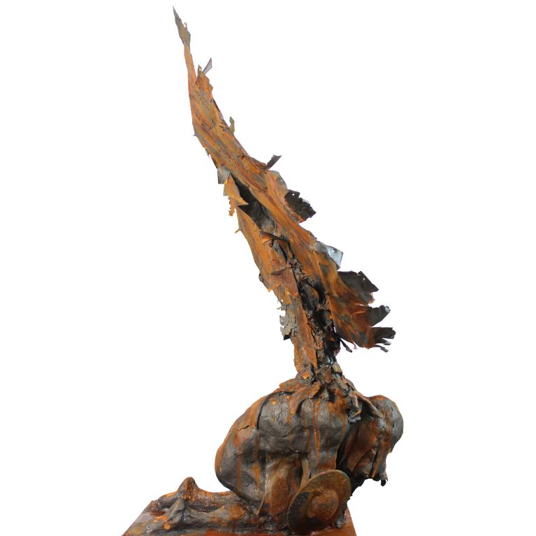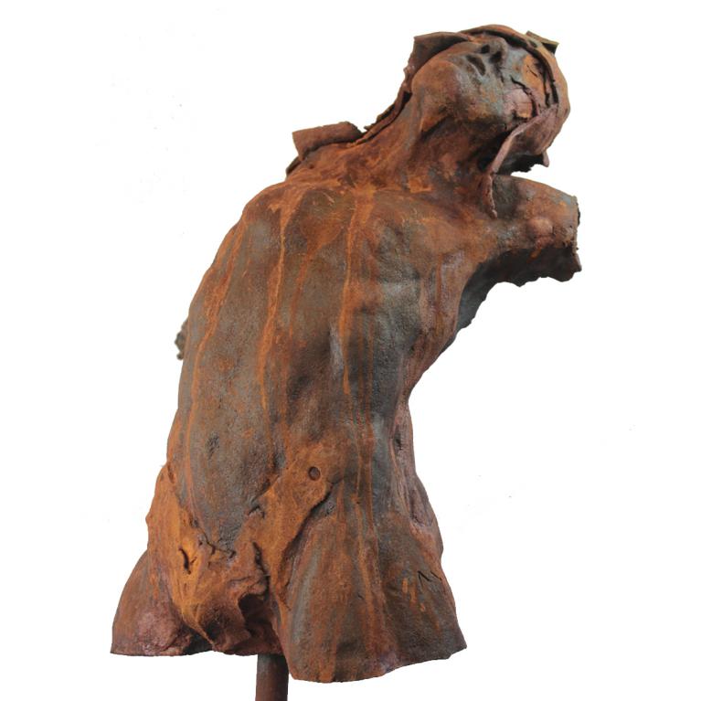 Anima liberari : grès et métal oxydation à froid dimension socle compris H170x55x30 cm