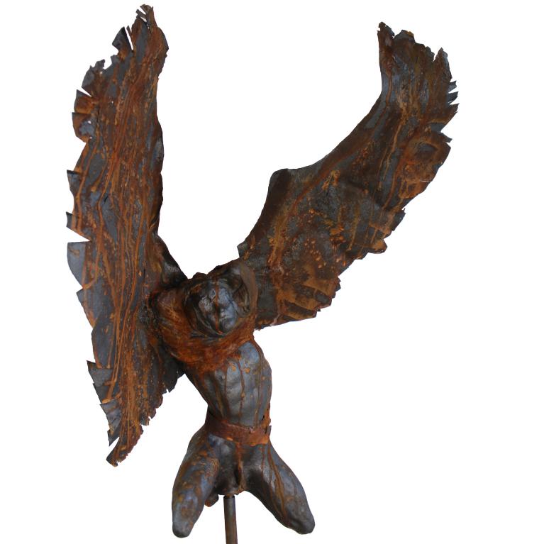 L'HOMME QUI VOULAIT VOLER grès et bois