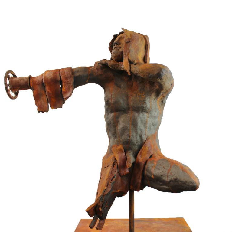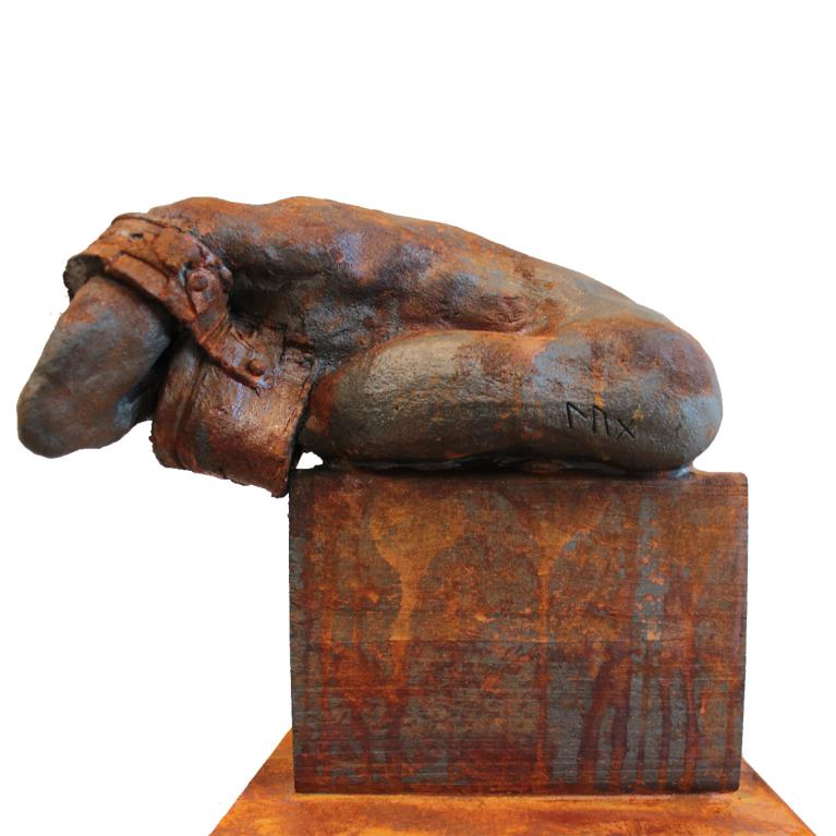 Le bras du temps : grès et métal oxydation à froid H60x50x35 cm
