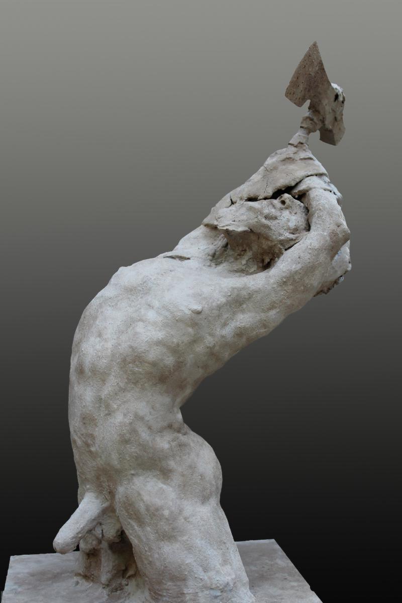 L'homme avec un grand hache: grès et métal H 56x33x30 cm