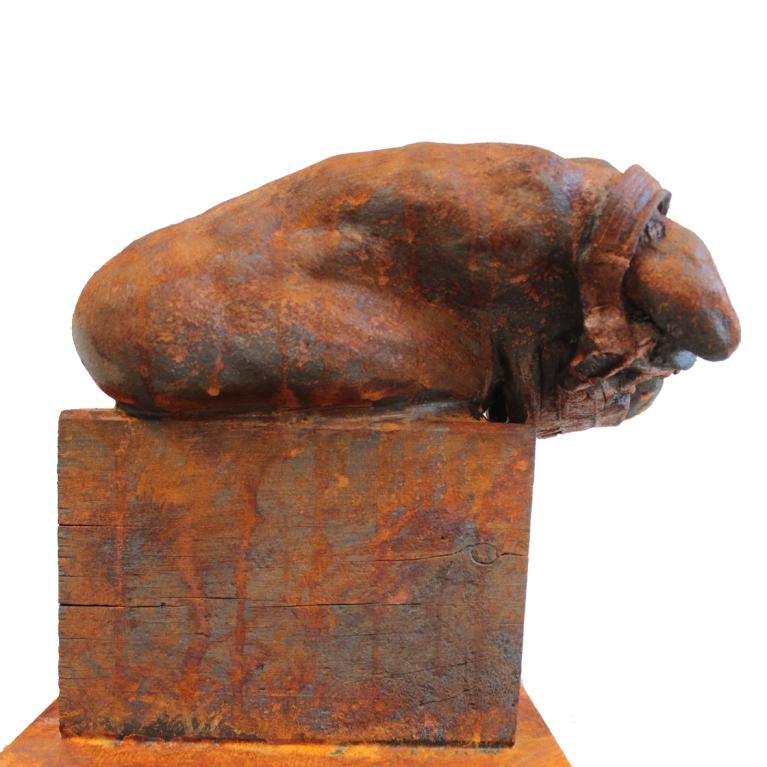 La muselière : grès et bois oxydation à froid H27cmx31cmx23cm